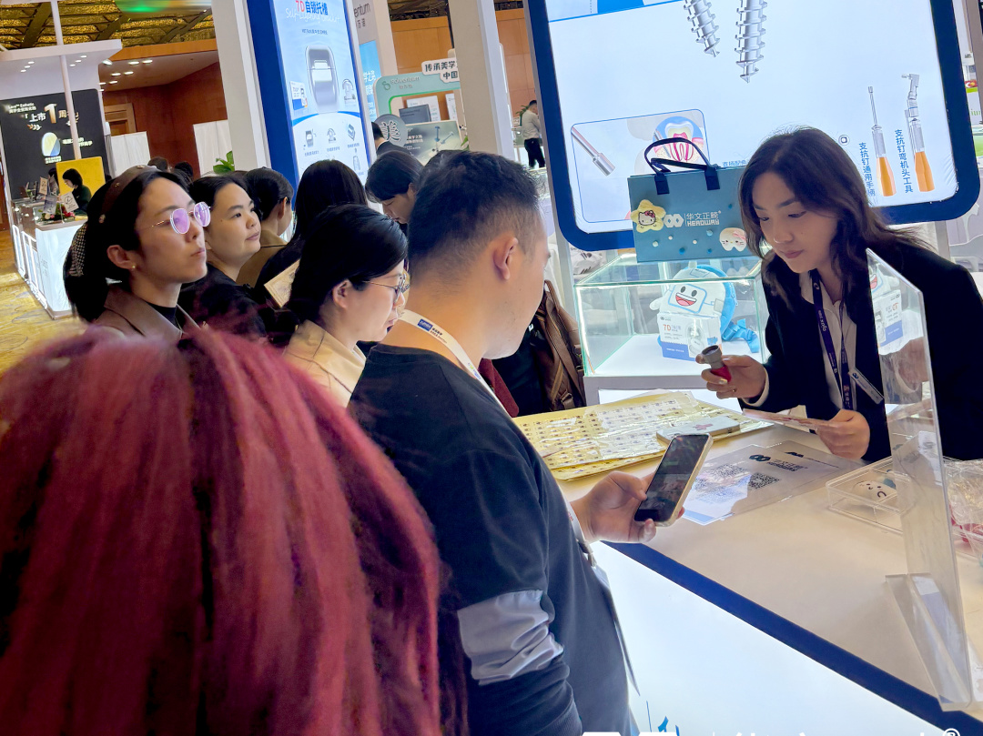 展会上展示了以精湛工艺和严谨态度打造的产品:正畸自锁托槽与正畸支抗钉。其中青春版自锁托槽和7D自锁托槽外观圆润,锁片开合丝滑,助力医生提高临床效率;正畸支抗钉小巧圆润的钉头且无尖头的设计,将支抗稳定性提升至新高度。我们与来自五湖四海的同仁们深入交流,产品的卓越性能与可靠品质赢得了广泛赞誉!